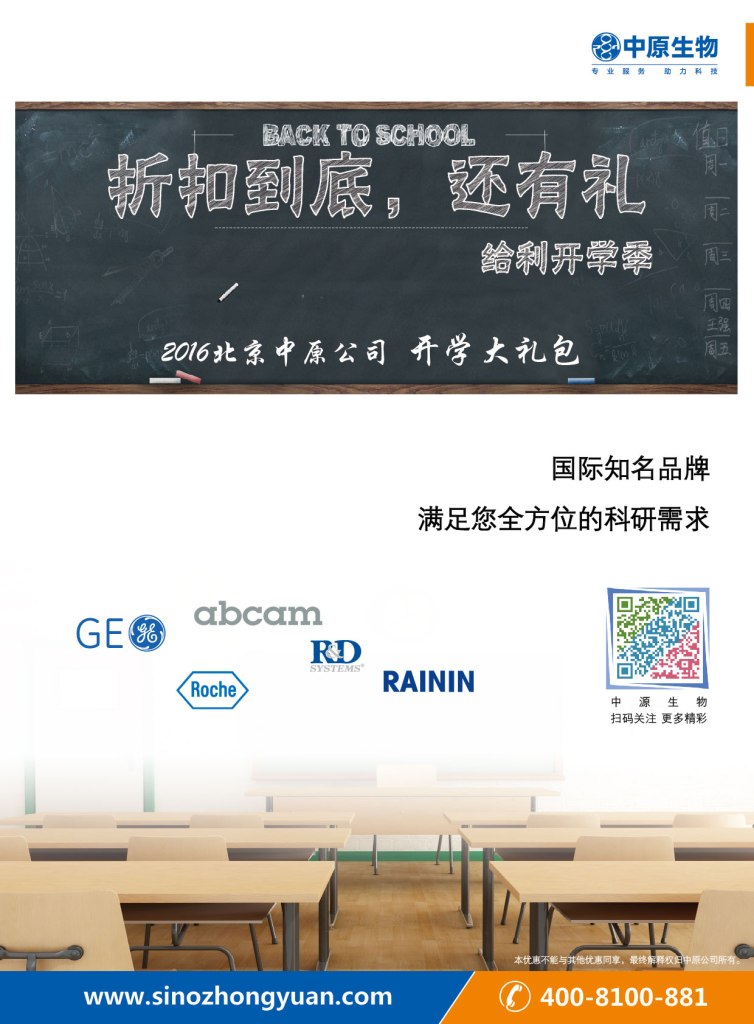 2016中原生物开学大礼包来啦!GE,Roche,abcam,R&D,Rainin等国际知名品牌,满足您全方位的科研需求!折扣到底,还有礼!给利开学季...2016-09-18 10:37:00.0