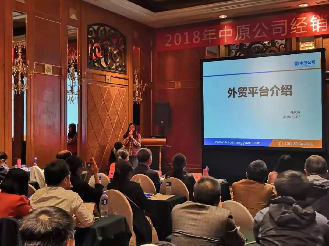 2018年11月2日,中原公司2018年经销商大会在北京中航泊悦酒店成功举办。会议邀请了多家经销商参加,大家欢聚一堂,相互交流。中原公司对产品资源,各品牌热卖产品,及外贸平台和进出口业务进行了全面介绍。