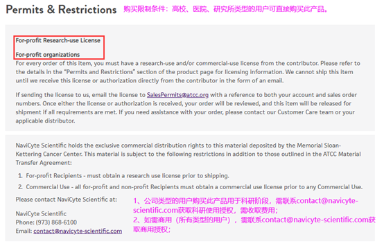 订购某些ATCC产品时,有特殊的限制条件,这部分信息可以在产品详情页的Permits & Restrictions部分查看。
