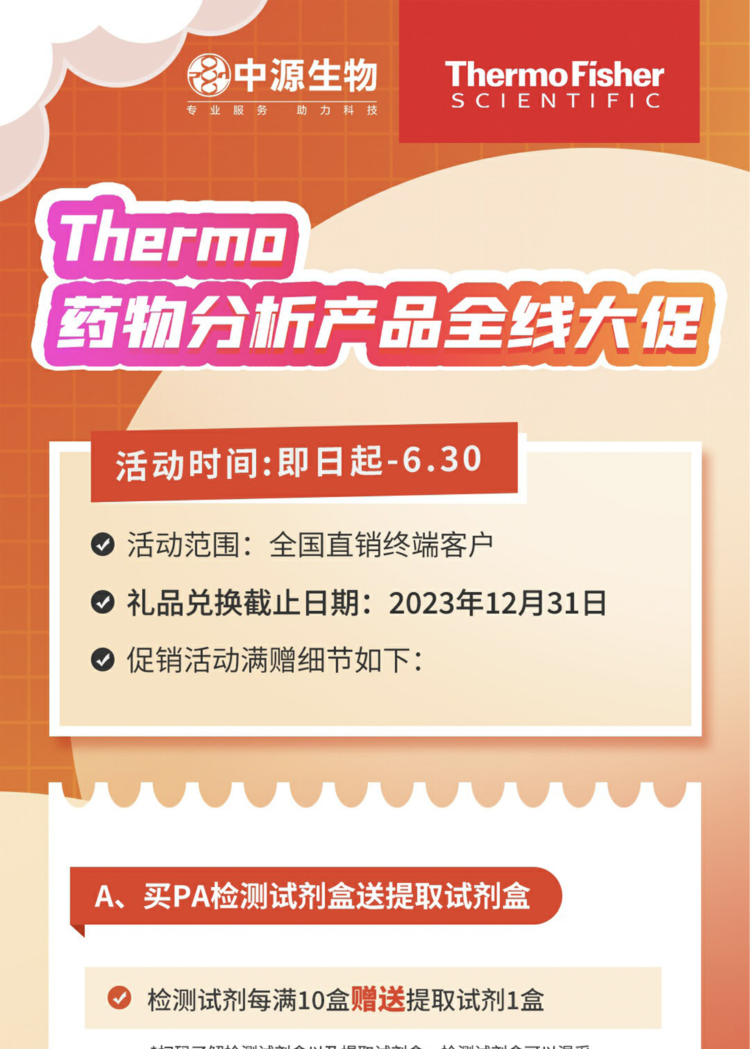助力中国研发,我们从未停歇—— 即日起至2023年6月30日,Thermo药物分析(PA)产品全线促销活动开始啦! 本次促销分为三个活动,快来看看...2023-04-27 14:25:00.0