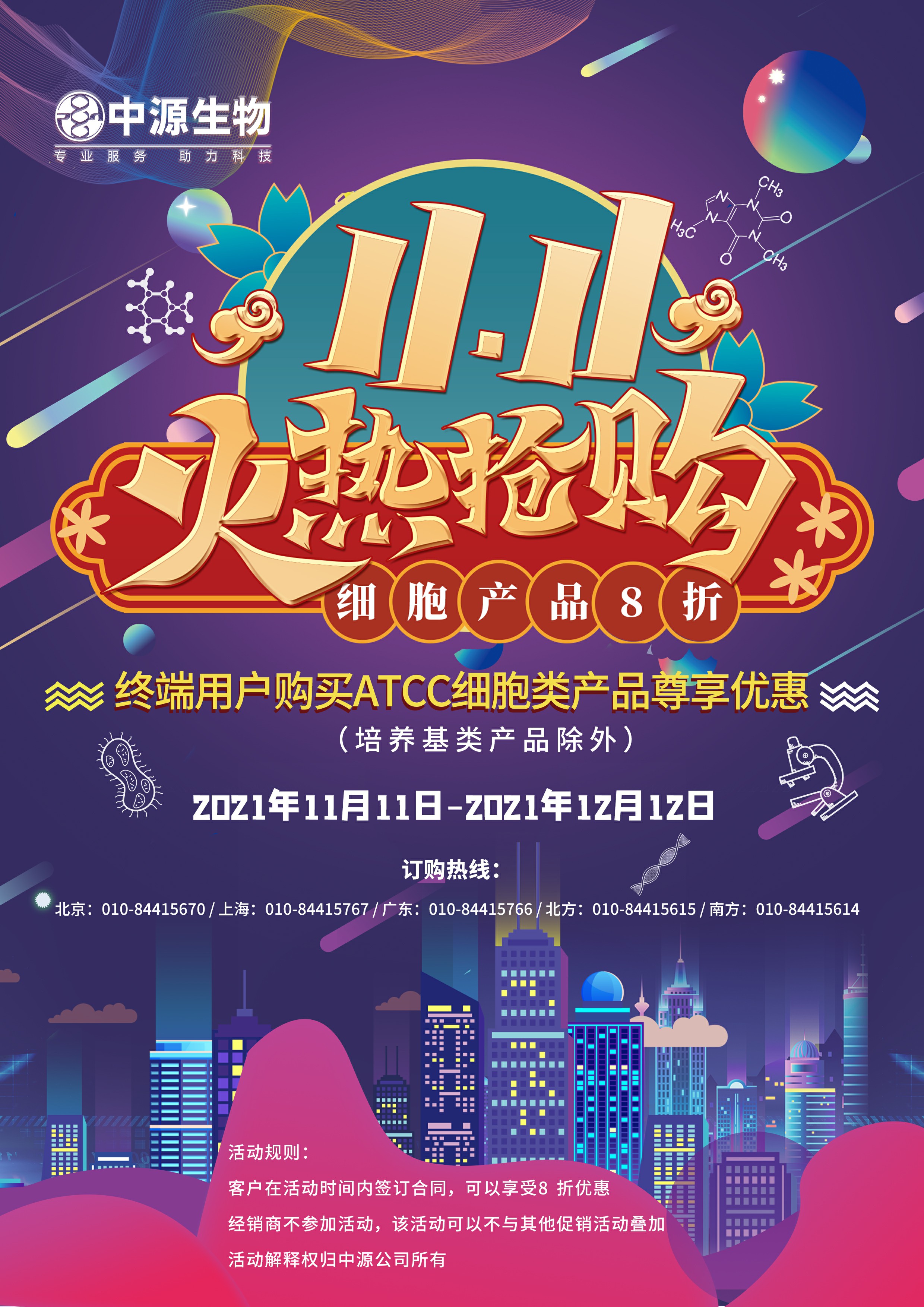 双11倒计时!ATCC细胞类产品全线优惠抢购!感恩-“价”给你,心动不如行动,快快参与吧! 2021-11-17 13:50:00.0