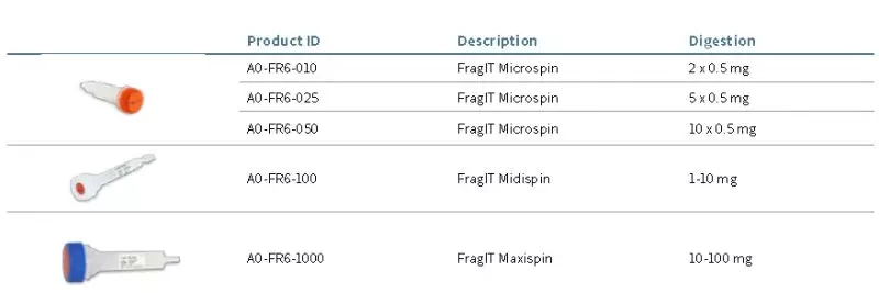 以琼脂糖为基架,提供了预填充固定化的FabRICATOR的柱子,可在柱内直接酶切,酶切产物可用用离心的方法收集。