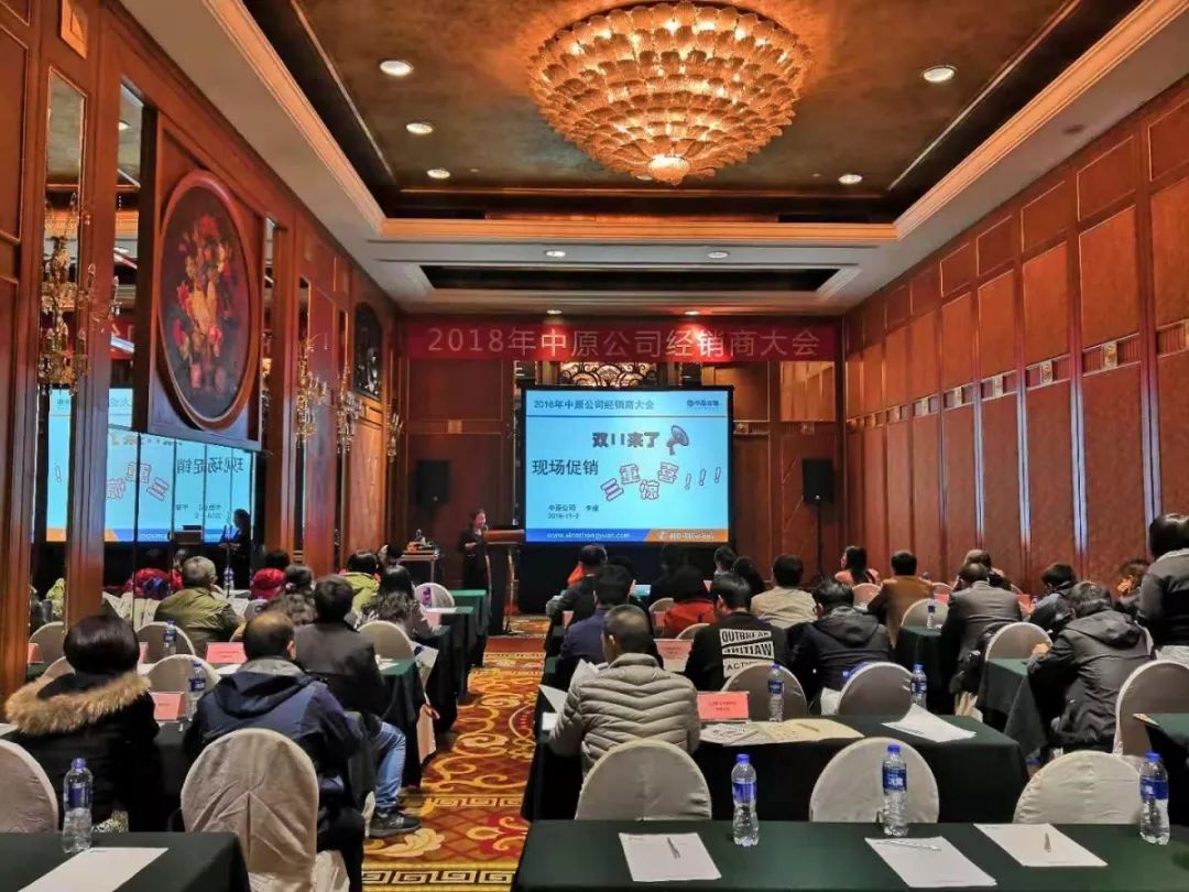 2018年11月2日,中原公司2018年经销商大会在北京中航泊悦酒店成功举办。会议邀请了多家经销商参加,大家欢聚一堂,相互交流。中原公司对产品资源,各品牌热卖产品,及外贸平台和进出口业务进行了全面介绍。