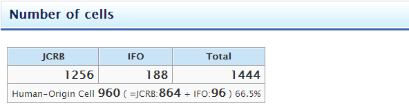 日本JCRB细胞库专注于收集人类和动物的各种培养细胞,包括癌症和转基因细胞。日本JCRB细胞资源被分配给日本和世界各地的研究人员。这些细胞经微生物污染、病毒污染和交叉培养污染检测,均为检验合格细胞株。一些细胞具有核型和/或细胞表面标记的特征。JCRB正与世界上其他主要的细胞库合作,开发细胞培养和质量控制方法,以支持药物科学的医学基础研究。