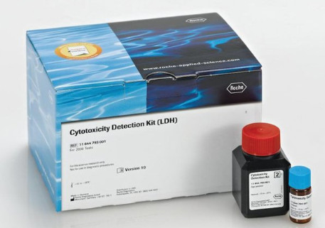 Cytotoxicity Detection Kit(LDH)是基于检测受损细胞释放的LDH活性,从而对细胞毒性进行快速简单的定量。当细胞膜发生损伤时,细胞会释放LDH到细胞上清中。LDH是个稳定的细胞质蛋白,正常情况下在所有细胞中保持几乎相同的浓度。