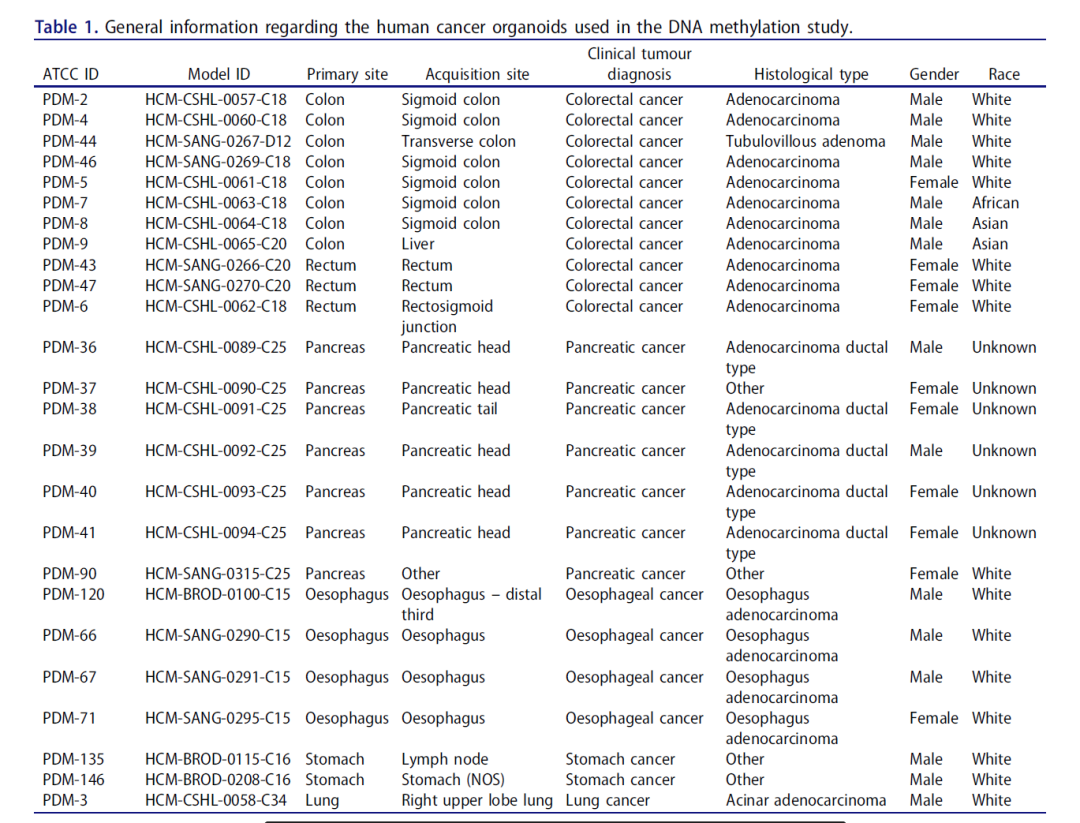 The DNA methylation landscape of human cancer organoids available at the American type culture collection,(//doi.org/10.1080/15592294.2020.1762398),这篇文章提供了25种人类癌症类器官的表观遗传指纹特征。已开发的研究表明,这些肿瘤模型对生物医学研究界和制药公司开发抗癌药物非常有用。